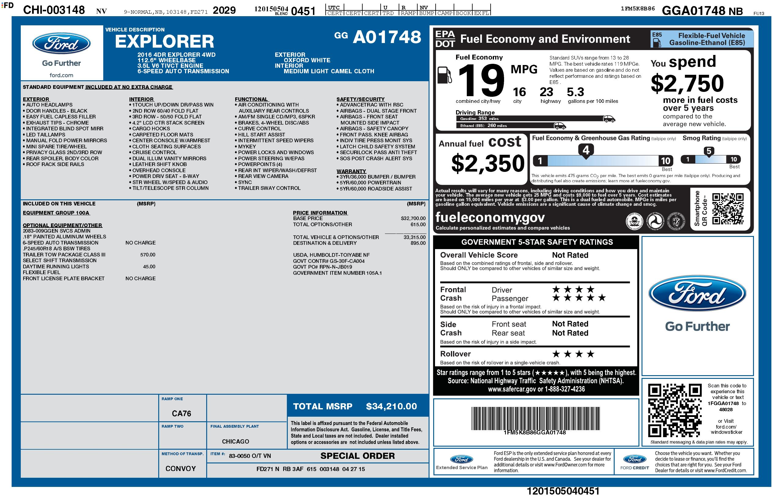 The Carfax report available for this Explorer means you can purchase with confidence. Whether you're running errands around town or embarking on a cross-country road trip, this White 2016 Ford Explorer is the perfect choice for those who want style, safety, and reliability in one package.
