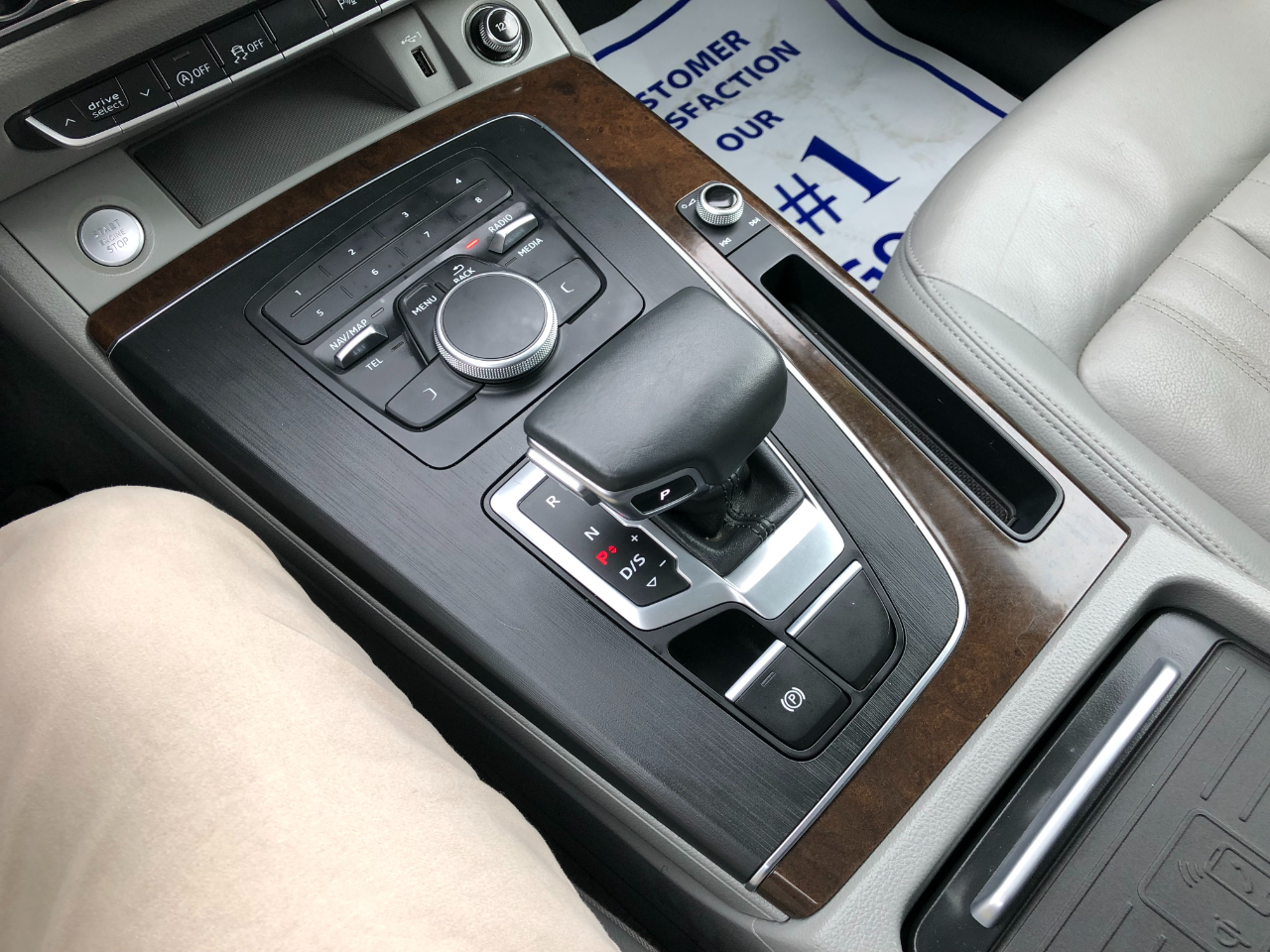 - Lower door trim LED light displaying Audi logo (4 rings)