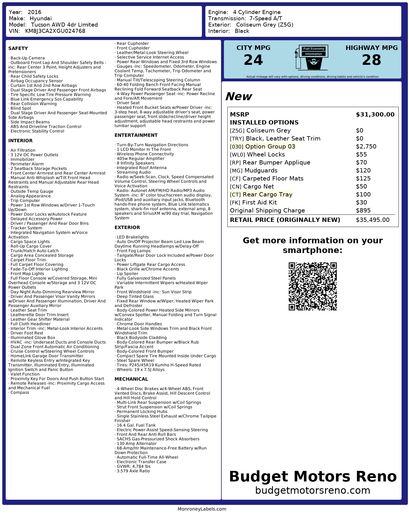 Get ready to hit the road in style with this sleek Gray 2016 Hyundai Tucson! This versatile SUV is perfect for all your adventures, whether it's a weekend getaway or simply running errands around town. With its modern design and impressive performance, you'll turn heads wherever you go.