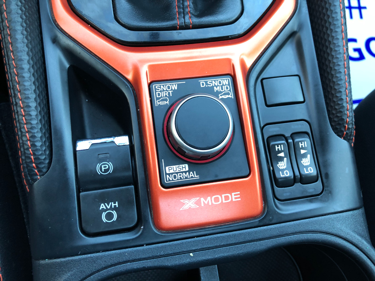 - red/orange stitching