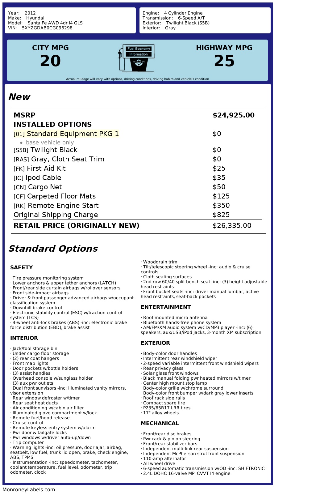Vehicle Options: